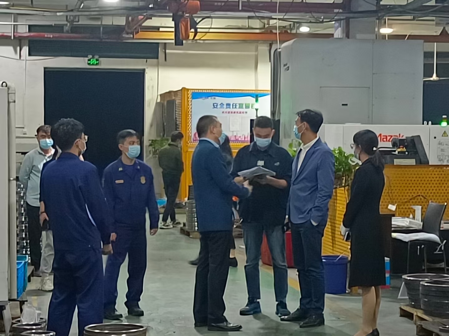 10月12日晚上,溫州市灣新區(qū)領(lǐng)導(dǎo)前來我公司進行指導(dǎo)生產(chǎn)工作。