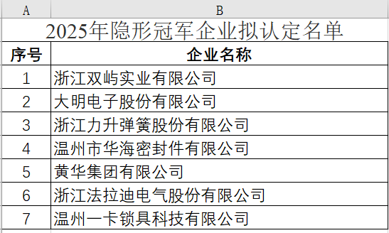 關(guān)于2025年度浙江省隱形冠軍企業(yè)認(rèn)定和復(fù)核通過(guò)名單的公示
