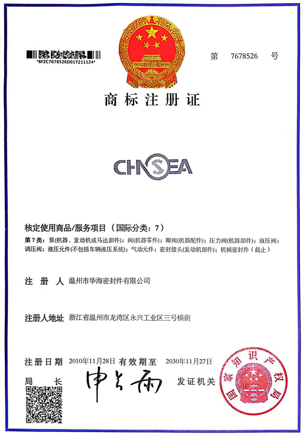 華海商標(biāo)注冊(cè)證書(shū)